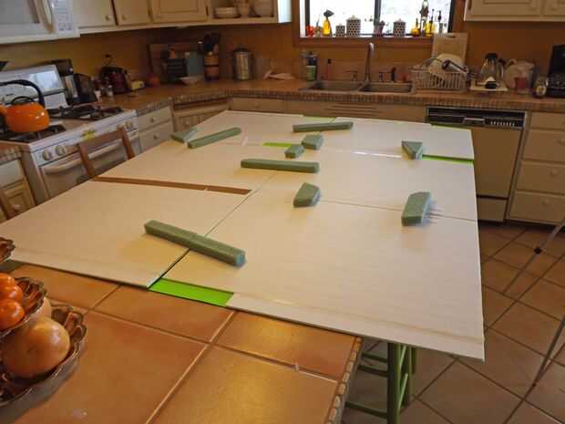 Nota: corté la base de la espuma un poco más pequeño que el cartel sube alrededor de los bordes tan las tablas superposición un poco Cuándo pondría juntos.