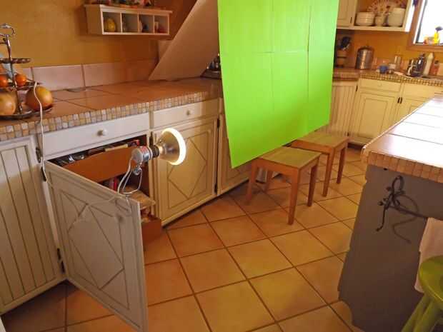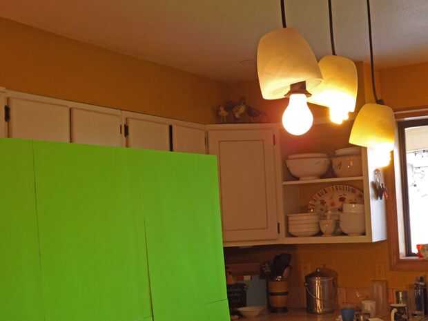 El otro inconveniente en mi video de la intro fue falta de iluminación en general. En un día soleado, los resultados eran mejores debido a la luz de streaming a través de las ventanas. Se puede sustituir la luz natural con las luces de inundación como la que enganchado a la puerta del armario aquí. Coloque su iluminación de tal manera que el tema no proyectan una sombra en la pantalla verde.