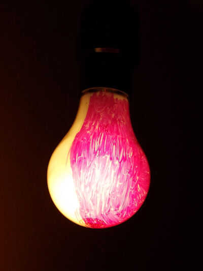 El propósito de la luz magenta es contrarrestar el reflejo verde de piel y texturas borrosas. Idealmente, la luz magenta sería detrás y sobre el tema. Para hacer una luz magenta barata, pintar un foco de luz con un marcador permanente magenta. En mi configuración, tenía un banco de tres luces por encima de la isla que eran directamente encima de mí ya filmé, y pegué la luz magenta en la toma de media.