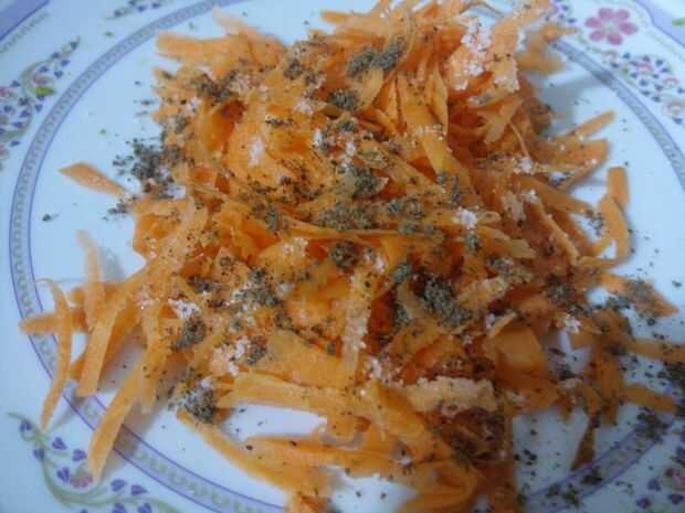 Ahora combine los chiles de zanahorias ralladas, verde, hojas de cilantro, sal y comino. Mezcle todo los ingredientes bien. Relleno utilizar zanahorias crudas como relleno se Haz cocinado durante la cocción los parathas.