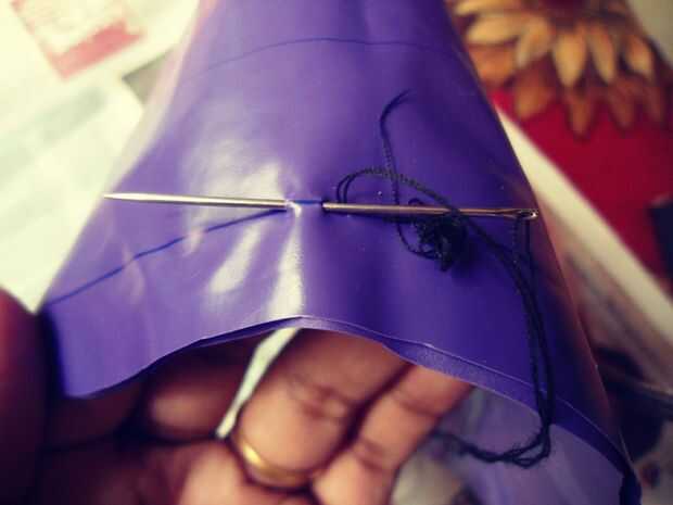 Como hacer zapatillas de un viejo impermeable. (5 / 11 paso)