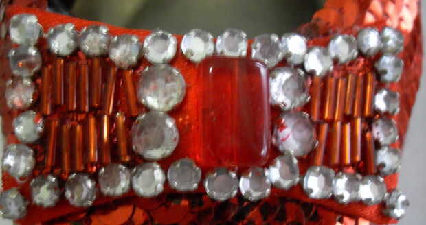 Paso 4: Coser la piedra roja en el centro del arco y luego usar los diamantes más grandes a coser alrededor de la piedra.