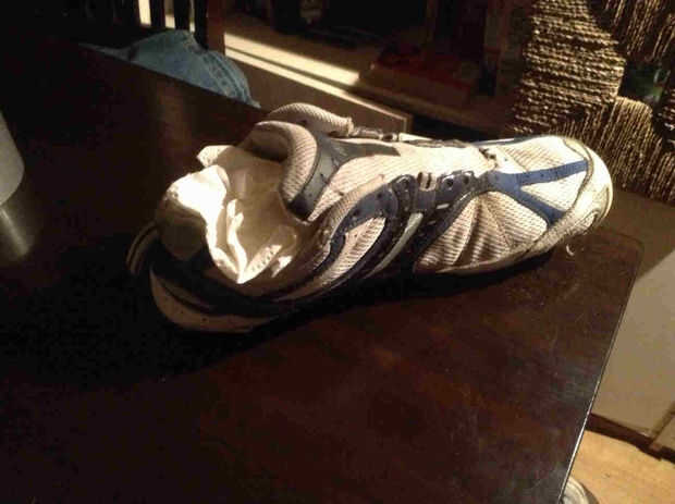 Comenzará su viaje mágico de la fabricación de mocasines haciendo una estructura.  Retirar la suela, cordones y cualquier otra cosa que prohibiría más tarde a sacar la cinta del conducto.  Después de que se hace, el paquete el zapato con toallas de papel para que el zapato se bombea un poco.