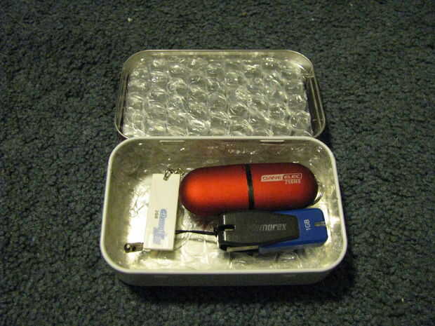 este Instructable le mostrará cómo hacer un USB pulgar unidad protector/estuche de una lata Altoids. Si usted es como yo y tiene múltiples USB pulgar unidades, esto le ayudará a organizar parte de su vida digital! Este simple proyecto puede crearse en cinco minutos, si usted tiene los suministros adecuados.