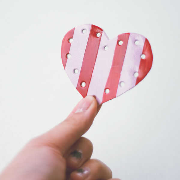 10. Marque con cuidado y más agujeros donde quieres que tus tacos para ir. Opté por los espacio uniformemente alrededor del borde del corazón, pero siempre puede ir para un diseño asimétrico y utilizar todo el espacio disponible.