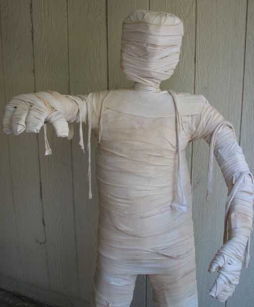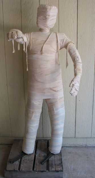 Envolver las piernas a continuación, a partir de la entrepierna y trabaja su manera abajo de cada pierna. Las envolturas de cabeza y cuello son las envolturas sólo que debían de estar completamente seco antes de envolver, así que asegúrese de que estas son ligeramente húmedas antes de embalaje.