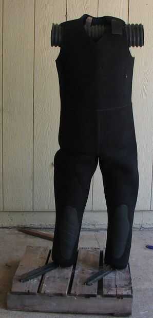 Corte una sección de dos pies de la tubería de drenaje corrugado; Esta pieza será los hombros, así que descansa en la parte superior del torso y atadura lo en su lugar. Asegúrese de que usted-atadura de alambre lo para que no haga rodar los hombros alrededor de, de lo contrario tendrás algunos inclinación de cabeza y cuello pasando más adelante.