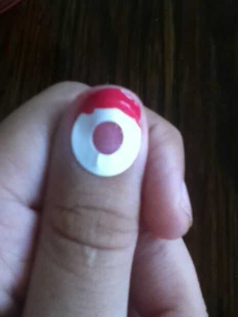 Sacar tu pulimento rosa caliente. Pintar la tira que está por encima de la pegatina! Su if perfectamente bien obtendrá polaco en la etiqueta. Despegue la etiqueta con cuidado, o si lo desea, espere hasta que esté seca para estar segura.