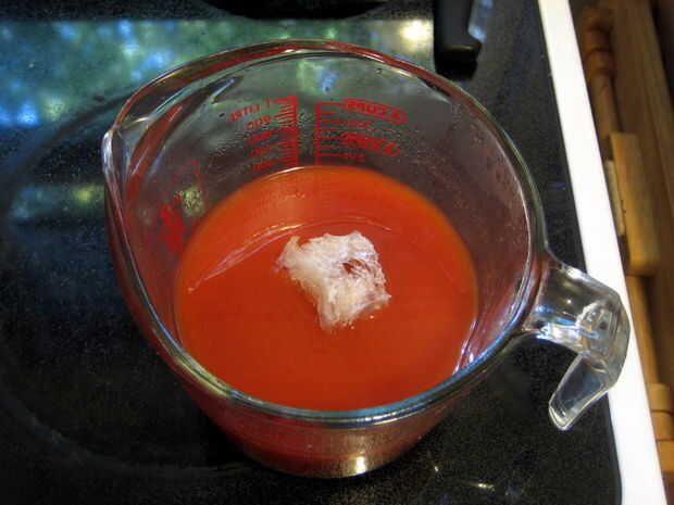 Una vez que el líquido esté hirviendo, poner al agente gelificante en el líquido y dejar reposar unos minutos hidratar. Llevar el líquido a ebullición en el microondas, removiendo ocasionalmente hasta que se disuelva completamente el agente gelificante.