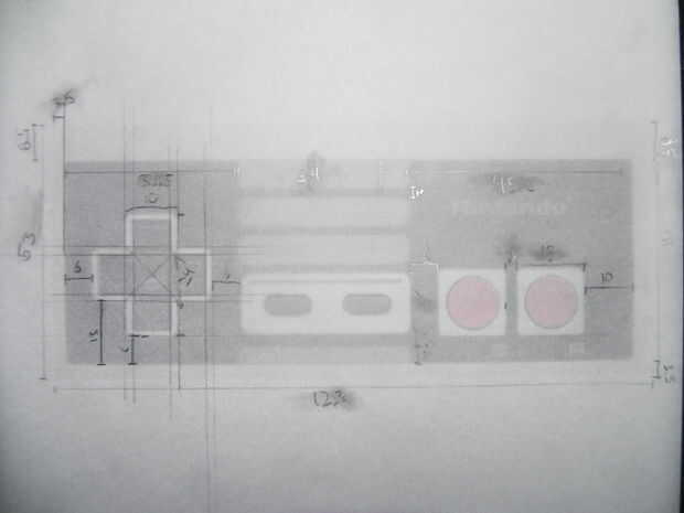 También hice algunos planos para yo seguir. He fotocopiado mi controlador y coloca una hoja de papel de calco sobre el papel normal que el controlador se copia a. la razón por la que hizo esto fue para poder escribir y borrar las medidas y todo eso. Entonces tomé pinzas y había medido el controlador real en milímetros y sólo había trasladado a centímetros. Estas mediciones son más de una línea de guía que nada.