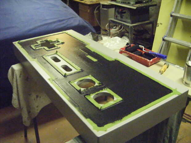 Una vez tuve unas cuantas capas de gris claro en el controlador enmascara una parte pequeña y rodado en el gris oscuro. Entonces enmascarado apagado el resto del controlador y rodado en el negro. Cuando pela del enmascaramiento bastante estaba avivado!