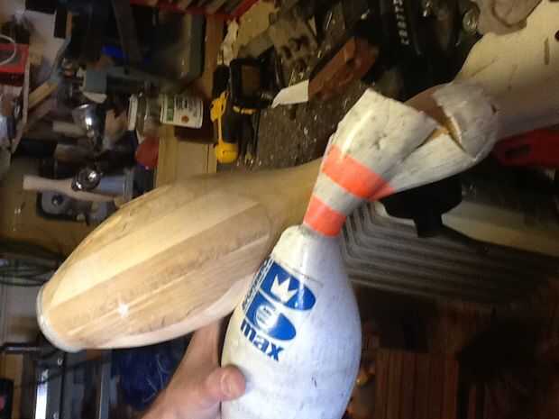 Después bajé la capa yo montado en el torno y áspero cortar para quitar todo el material splintery y ver cómo buena la madera por debajo. Su laminado arce del Rock duro. todavía no estoy seguro qué puedo hacer con él, pero mal pensar en algo...