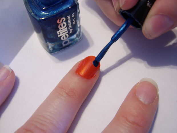 Limpie el cepillo en el borde de la botella para que no tenga demasiado Polaco exceso, tampoco tus manchas será casi circular.