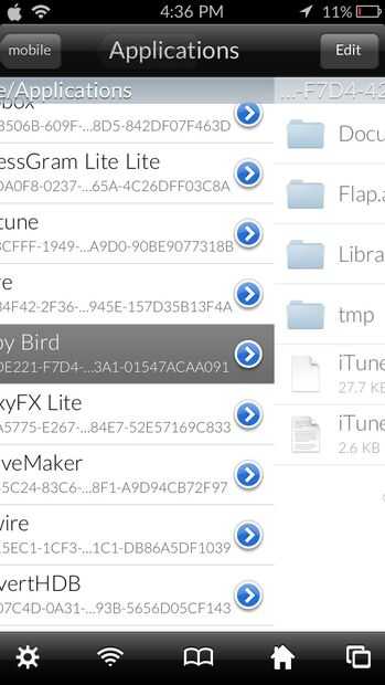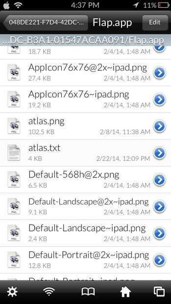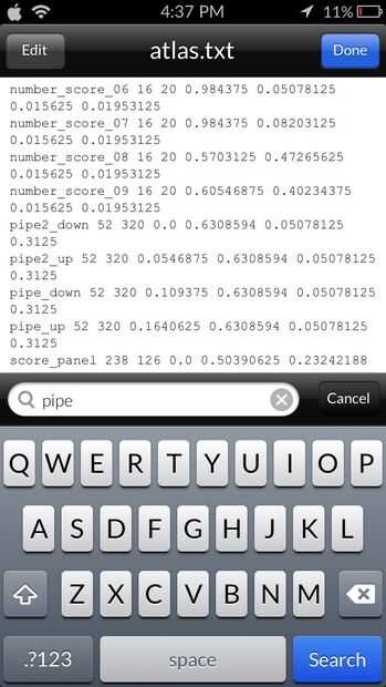 ~ Ir a var/mobile/aplicaciones/FlappyBird ~ Haga clic en Flap.app ~ Desplácese hacia abajo y haga clic en atlas.txt ~ Búsqueda 'pipa' y cambiar el 320 después de "pipe2_up" "pipe_up" "pipe2_down" y "pipe_down" 5