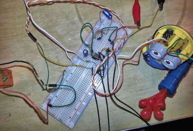 Tal vez usted no tiene un Phil, tal vez está esperando llegar de ebay... bien te recomiendo un protoboard primero para este proyecto de todos modos. ¿Por qué? Bien tiene cierta complejidad, puede ser retocado un poco y cuando finalmente pasa en perf board te quiero bastante pequeño caber dentro de los súbditos... y además... es divertido! Protoboard de circuitos son bonitas porque no hay ninguna soldadura, por lo que son rápidas y fáciles depurar y cambiar alrededor, etc.. Para este circuito que usted puede jugar con diferentes tipos de luces LED, diversos colores y brillo diferentes causan diferentes sonidos.