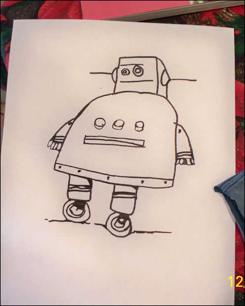 En primer lugar, es una imagen del robot para que podamos hacer nuestro patrón. Realmente es una simple obra de arte y yo pude han apenas dibujado, pero optó por copiar una imagen que descargué para que sea un duplicado exacto. Entonces, obviamente una camiseta o camisetas, una caja de luz y una variedad de pinturas acrílicas, un rotulador, un pedazo de cartón para insertar en la camiseta para evitar que la pintura de impregnación a través de y otros artículos misceláneos.