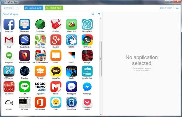 Su lista de aplicaciones del iPhone a la izquierda de la ventana del programa.