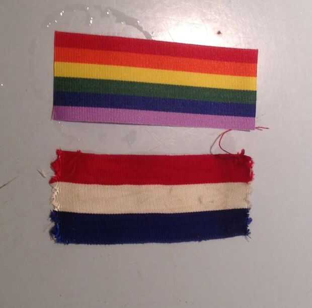 Cortó la cinta. Pedí alguna cinta de grosgrain de 35mm. Medición de la cinta en Estados Unidos es medida generalmente inglés, así que ordené cinta de 35mm de un proveedor de ebay en el Reino Unido. Me mide unos 80mm de longitud de la cinta del arco iris.