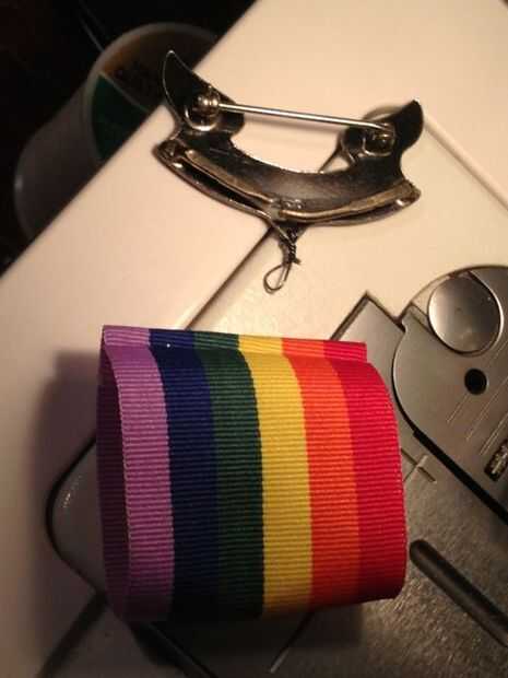 En esta medalla, la barra superior de la medalla tenía un corte en ella, que estaba sorprendido de encontrar. Lo inclinó ligeramente por lo que pude vuelva a colocar la cinta en la medalla. Rojo a la derecha, tal como se presenta al público. Doblé con cuidado en el lado de la puntada, por lo que era más probable que en posición plana.