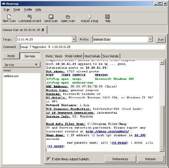 En el menú de "Perfil" de Zenmap, seleccione "Scan intenso" si no está ya seleccionada. Haga clic en analizar y ver como el programa escanea el equipo o dispositivo para los puertos abiertos. Ver la salida de nmap hasta ver algunas palabras en verde. Estos son los puertos abiertos en el equipo o dispositivo. Si puerto 23 está abierto, el dispositivo es hackeable.