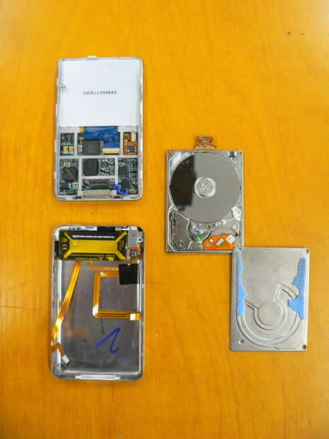 que necesitará algo fino y agudo lo suficiente para que entre las mitades de Ipod y de espesor suficiente para aflojarlos. Usé una tachuela en la parte inferior del Ipod. Una vez que estuvo partido funcionó arriba a los lados del Ipod hasta que hubiera un espacio lo suficientemente grande como para sacar con mis dedos o un destornillador o lo que tengas que poner a tu lado.
