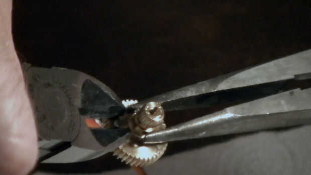 El eje con la punta de agarre y saque el pasador con el cortador lateral.  Tardará un poco alzaprimar pero saldrá.