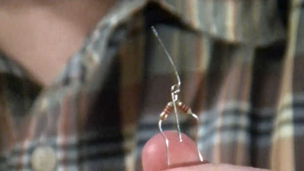 Trence las resistencias, y doblar uno de los cables de abajo como esta.