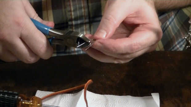 Recortar los otros dos cables, por lo que son la misma longitud que el que está en el centro.