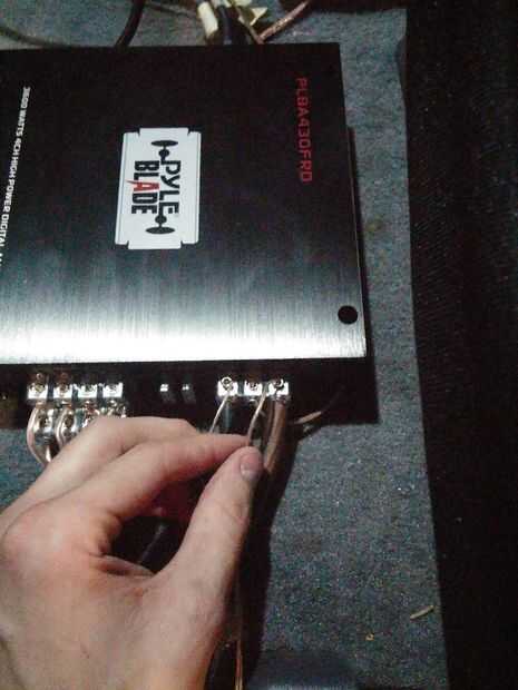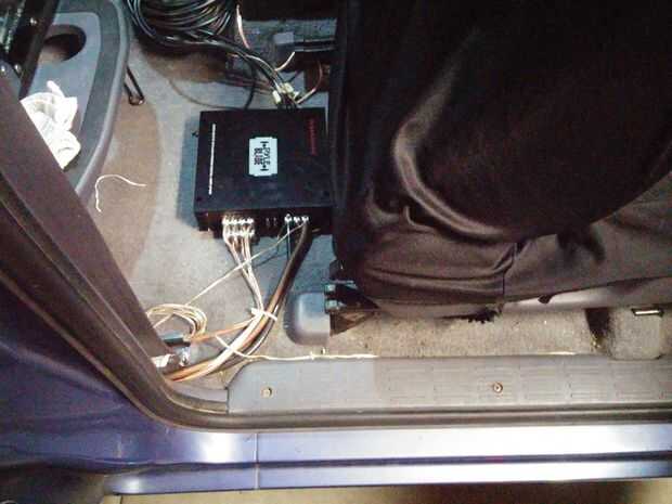 - Pase los cables de su "poder" a través de algún sitio donde no Haz patadas y eligió un lugar de poder. Elegir la batería sí mismo probablemente no es la mejor opción. Sólo usé un amplificador que había cableada bajo mi asiento del pasajero.