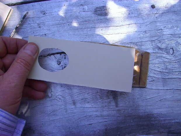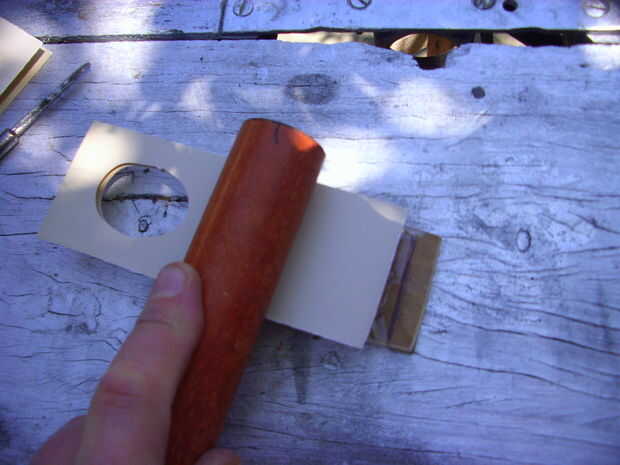 Las piezas descartadas de cartón deben colocarse dentro del hoyo, para ayudar a mantener la hoja afilada en su lugar.