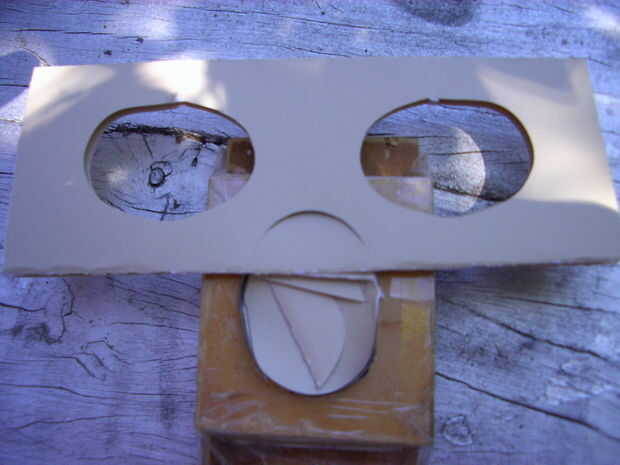 Una vez hecho los agujeros para los ojos, la muesca para la nariz puede hacerse usando una mitad del molde.
