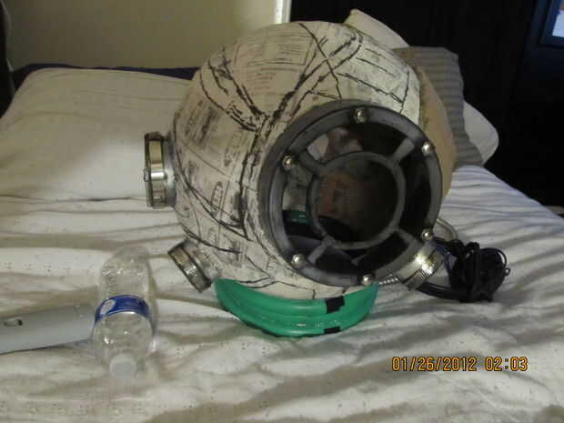 luego pegamento caliente las piezas de la manguera en el orificio del cuello.