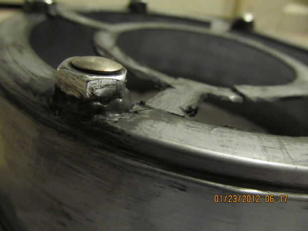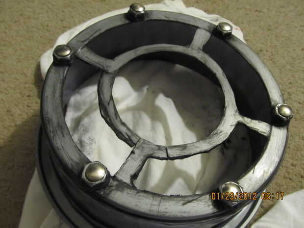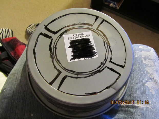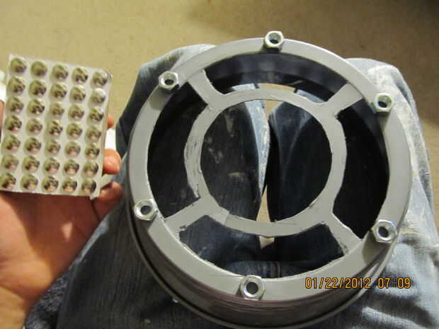 una vez que tome 6 tuercas hexagonal y pegamento caliente en forma de hexigon en la frontera de la parte inferior del tazón de fuente.