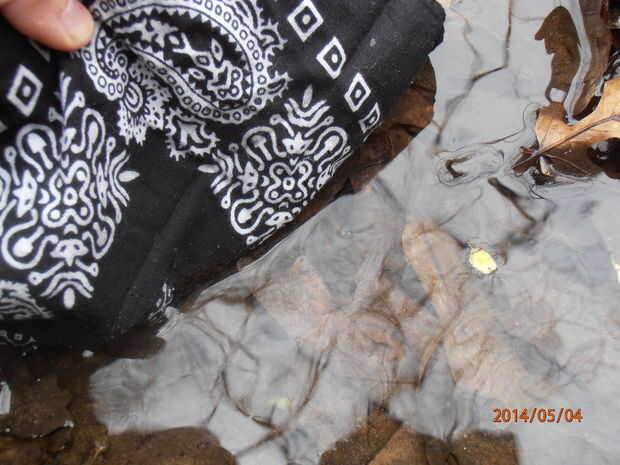 Encontrar un arroyo, río, arroyo,. Como es una fuente de agua que funciona. Cubrir la parte superior de la Copa de la cantina con un pañuelo (para filtrar impurezas mayor) llenan la Copa de la cantimplora con agua.