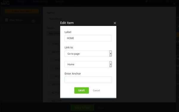 El menú de navegación se configura con el widget del menú. Arrastra y coloca en la parte superior del encabezado. Haga clic en "Editar" para crear elementos de menú. En cuanto al diseño del menú, existen tres valores estilísticos.