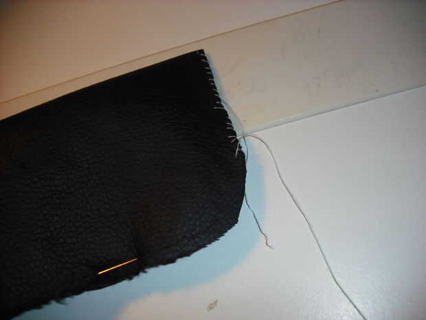 Las agujas usadas para mantener tanto capas articulados así puedo empezar a coser siguiendo el borde exterior, a partir de la parte inferior.