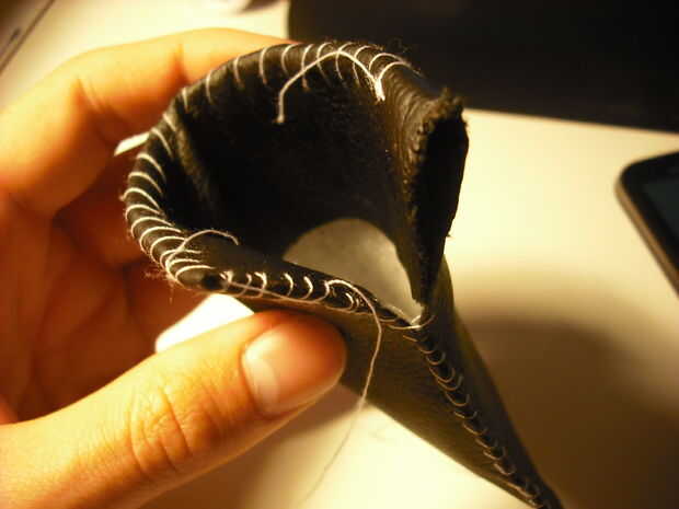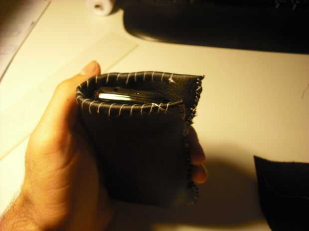 En este punto, podría han dejado la brecha abierta por lo que es fácil de sacar el teléfono. Pero estaba tan débil que tuve que cerrarla y cosa hasta el final, porque el teléfono saldría si deja abierta la brecha y lo quiero un poco apretado.