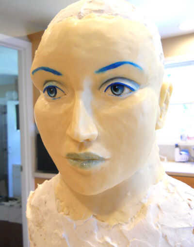 También usé un poco azul mezclado con aceite vegetal para teñir los labios
