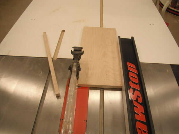 Mida un corte que es el mismo ancho que el espesor de la madera.  Hacer este corte en la tabla VI.  En este caso, la madera es. 75" por lo que cortar una tira de. 75" x la longitud de la tabla.