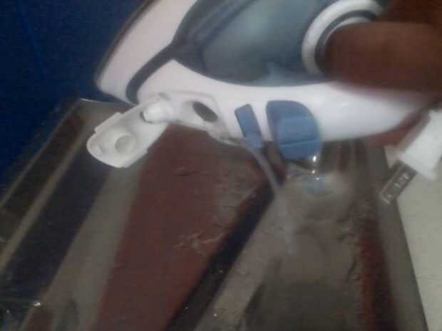 Tomar tu hierro y vaciar el exceso agua todavía a la izquierda en el compartimiento de almacenamiento. Dejando agua en el hierro podría conducir a la acumulación de minerales, que podría, a su vez, bloquean los orificios de vapor en la parte inferior de la plancha y, posiblemente, contamine el agua dulce en el hierro, que podría conseguir en su ropa limpia. Es importante hacerlo después de cada uso de la plancha, a menos que toda el agua a vapor mientras está en uso.
