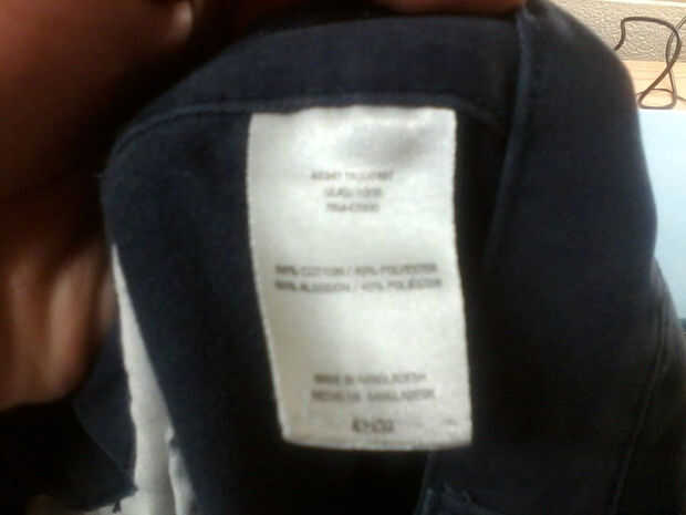 A continuación, Compruebe la etiqueta de los pantalones para determinar la mejor configuración para la plancha. No quiere quemarse los pantalones agradables, pero también desea que la plancha sea eficaz. Debido a la mala calidad de mi cámara, usted probablemente no puede verlo, pero mi etiqueta dice: 60% algodón / 40% poliéster.