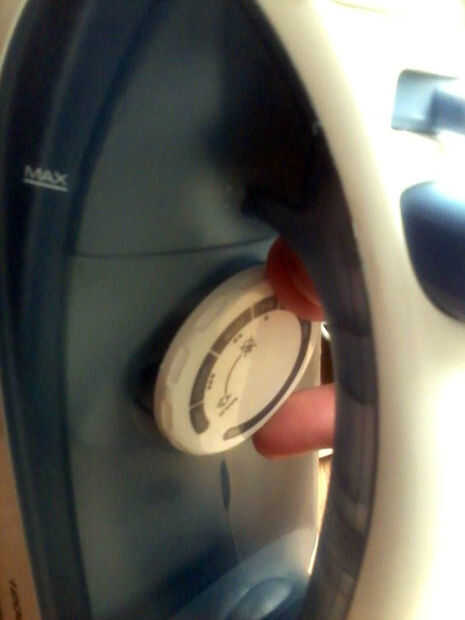 A continuación, enchufe la plancha y ajuste basándose en el material de los pantalones. Puesto que los pantalones que estoy planchado más algodón de poliéster, enciendo mi teléfono para usar más del ajuste entonces el ajuste poliester del algodón. Si existe un entorno de vapor a la plancha, enciende, porque el vapor será más eficaz para hacer un pliegue bien.