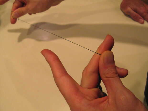 Al usar el hilo dental, puede desenrollar seda limpia con la mano fuera y envuelva el hilo usado en la mano dominante.