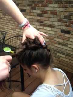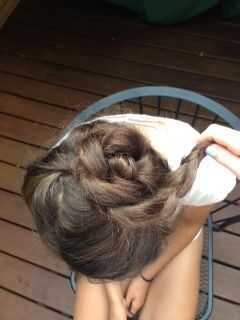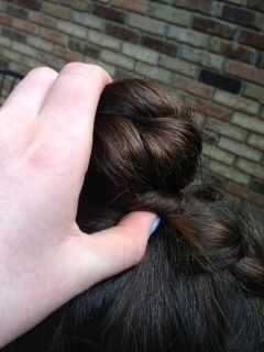 Gire la trenza alrededor de un punto central en la parte superior la cabeza firmemente. Meter los extremos del cabello en la parte inferior del moño. Asegúrese de que la trenza a lo largo de la parte de atrás permanece en su lugar y el resto del cabello es bonito y limpio.