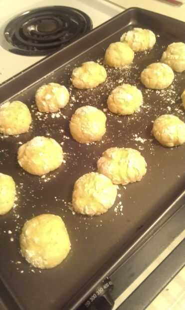 Receta de mi abuelita para ella cuando ella se casó en 1926. Mi abuela tuvo 12 hijos, mi mamá era la más joven, amantes de las galletas así que la abuela hizo éstos a menudo. Esta era su receta que ella escribió en un pedazo viejo de empapelado dio a