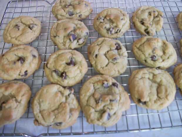 Tomar las galletas cuidadosamente de las galletas se enfríen. Tengo algunas rejillas para hornear que me gusta usar, pero no son una necesidad. Si no tienes uno ponga las galletas en una sola capa en placas, toallas de papel o un paño de cocina limpio, libre de pelusa. Les deje reposar un minuto o dos para no quemar la lengua, entonces comen para arriba!