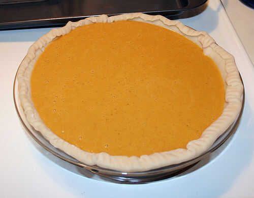 Hornear la tarta a 425 grados durante 15 minutos luego bajar la temperatura a 350 grados y hornee por 45 minutos.