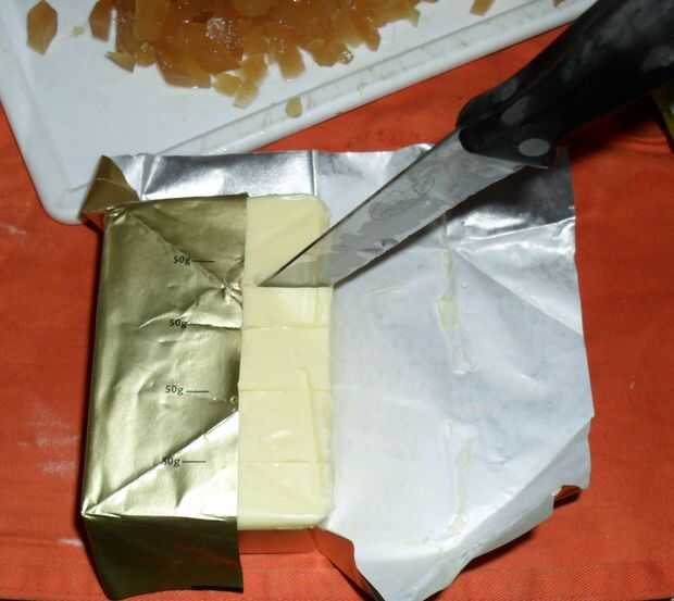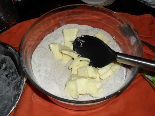Yo había picado luego la mantequilla en trozos pequeños. Habría hecho mucho más fácil si la mantequilla que había usado era a temperatura ambiente...
