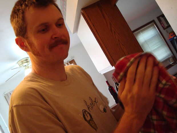Una vez que haya lavado su papa desea frote seco con un paño de cocina. Este es un paso importante porque si las patatas aún estén húmedas no queden tan bien pero me estoy adelantando.
