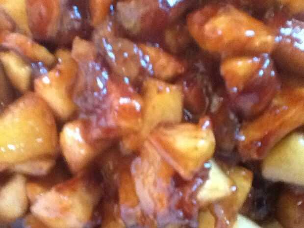 Como todas mis recetas, este crumble de manzana es fácil, porque no me gustan las cosas complicadas. La base es sólo manzana con una cucharada de harina, y el desmoche del streusel es mi penúltima tarta de manzana caramelo miga topping, mezclado con